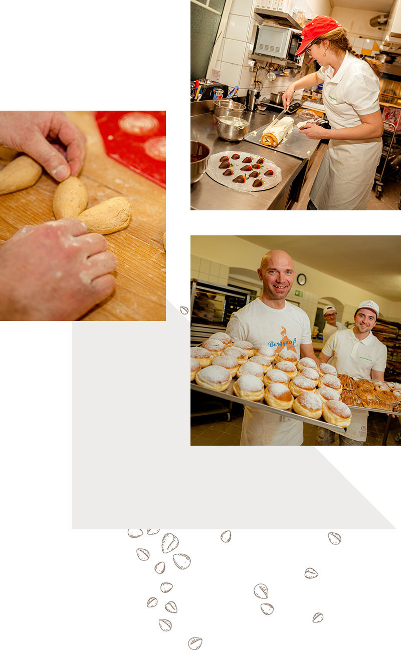 Konventionelle Herstellung heißt: nach jedem einzelnen Rezept werden täglich Teige zubereitet, Gebäcke geformt und nach den jeweiligen Reifezeiten auch direkt gebacken und unseren Kunden angeboten.