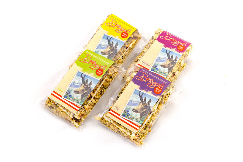 „Berggoaß“ nennt sich unser hauseigener Müsliriegel für Feinschmecker.